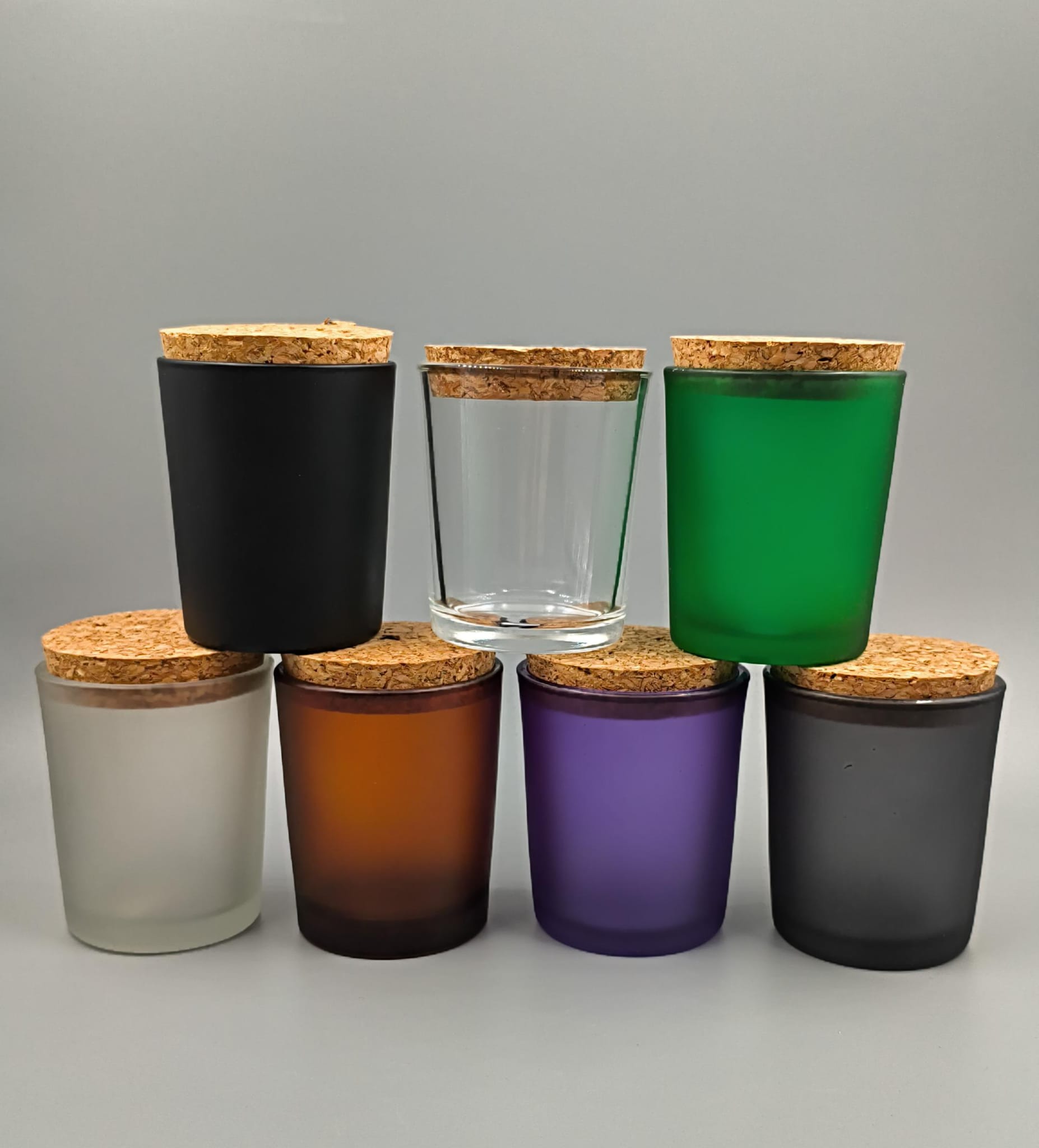 Vasos en vidrio 100ml con TAPA de CORCHO transparente y esmerilados cantidad