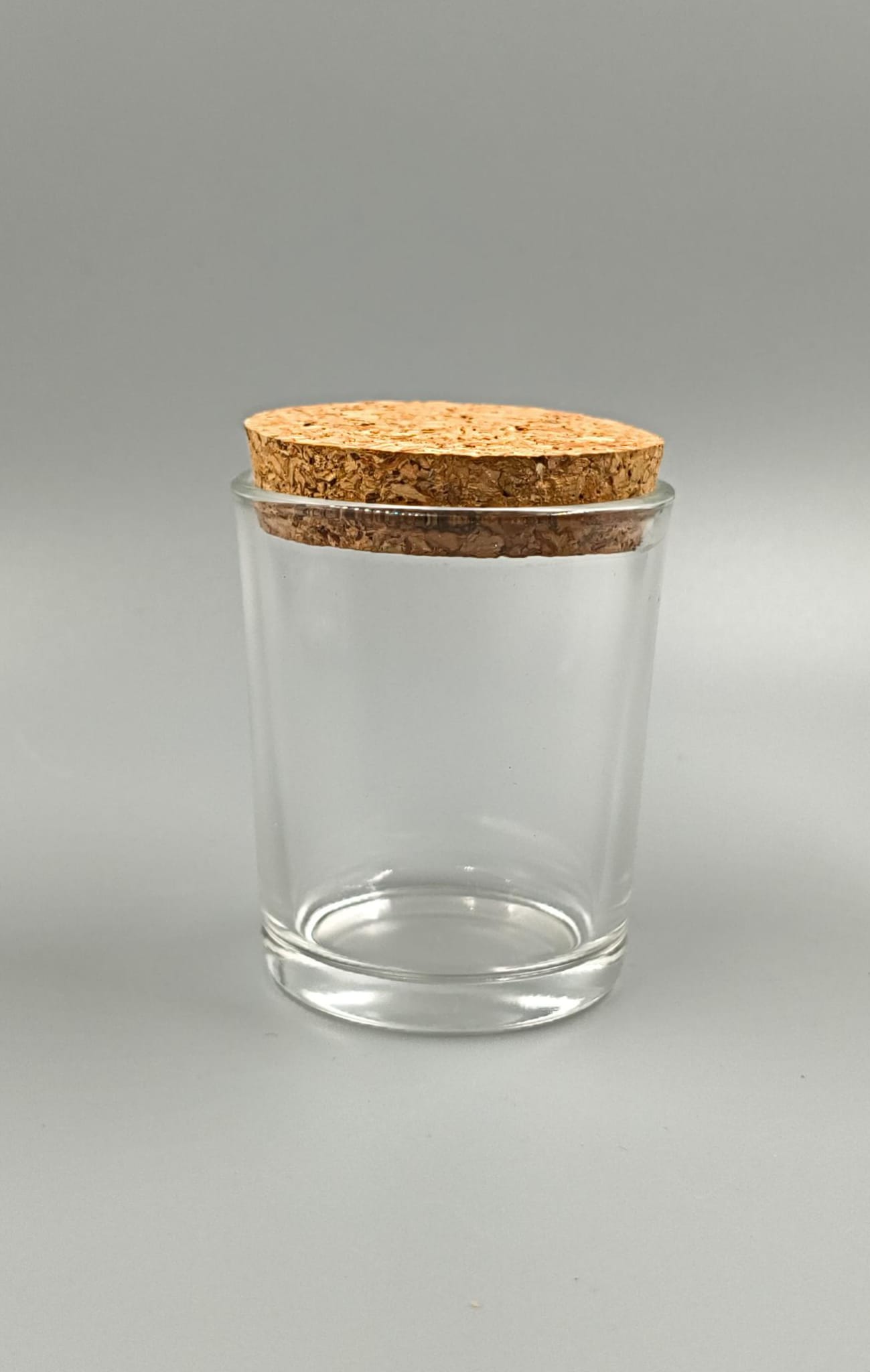 Vasos en vidrio 100ml con TAPA de CORCHO transparente y esmerilados
